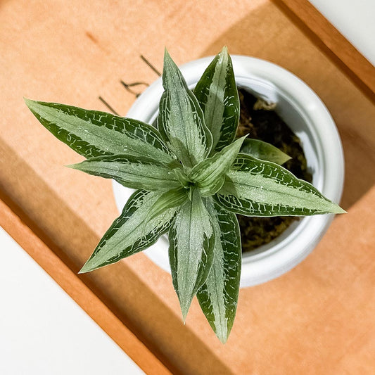 PLANCHU ジュエルオーキッド アスピドギネ アルゲンテア 3号丸鉢 受け皿付き 育て方説明書付き Aspidogyne argentea 観葉植物 洋ラン