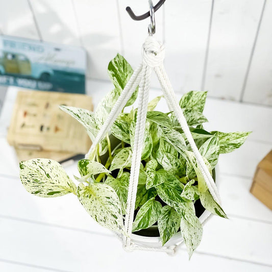 PLANCHU 観葉植物 ポトス マーブルクイーン 5号鉢 樹脂製ハンギング鉢カバー付き 育て方説明書付き エピプレムナム アロイド