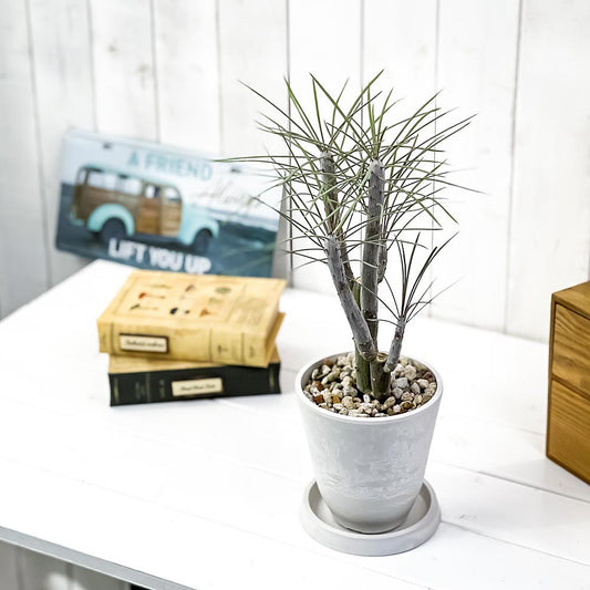 PLANCHU 観葉植物 モンキーツリー 4号樹脂鉢 ホワイト サスティー付き 受け皿付き 育て方説明書付き Senecio kleinia neriifolia セネシオ クレイニア 天竜 多肉植物