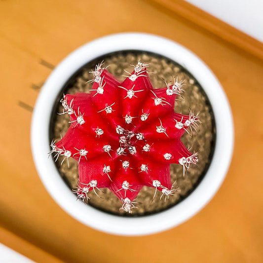 PLANCHU サボテン ギムノカリキウム ヒボタン レッド 3号丸鉢 受け皿付き 育て方説明書付き 観葉植物 キャンドルサボテン カラーヘッドサボテン 緋牡丹 ひぼたん