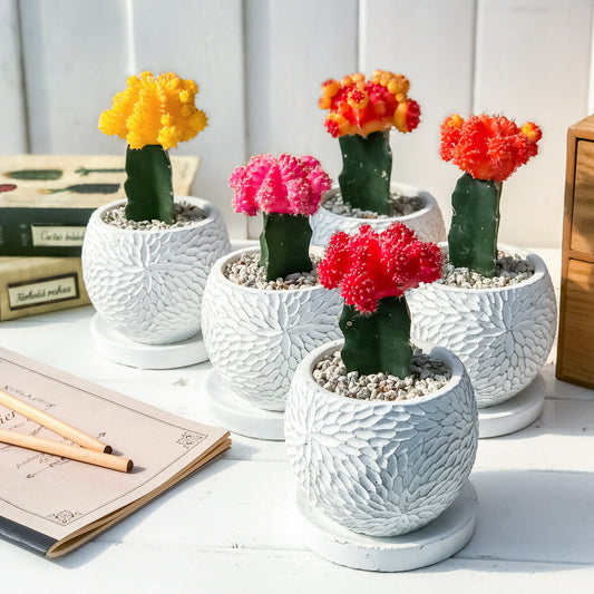 PLANCHU サボテン ヒボタン 陶器鉢植え 受け皿付き 育て方説明書付き 緋牡丹 ギムノカリキウム キャンドルサボテン カラーヘッドサボテン 観葉植物 丈夫 初心者向き