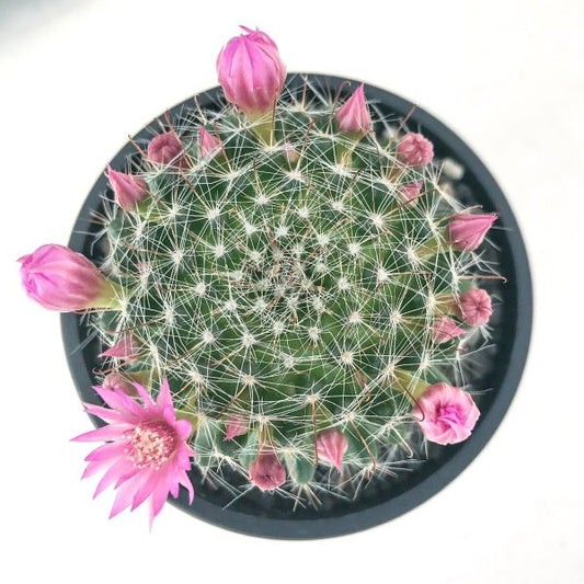 PLANCHU サボテン マミラリア ピンクニンフ 3号鉢 受け皿付き 育て方説明書付き Mammillaria ‘Pink Nymph’