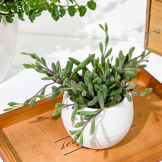 PLANCHU 多肉植物 オトンナ ルビーネックレス 3号丸鉢 受け皿付き 育て方説明書付き Othonna capensis 紫月 しげつ 観葉植物
