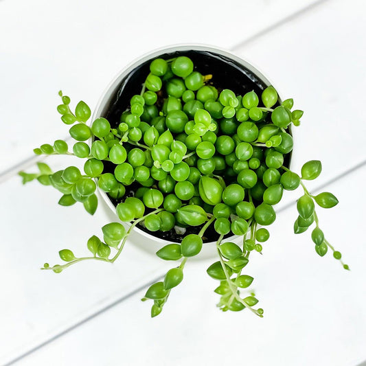 PLANCHU 多肉植物 グリーンネックレス 3.5号鉢 受け皿付き 育て方説明書付き Curio rowleyanus クリオ ミドリノスズ 緑の鈴 観葉植物
