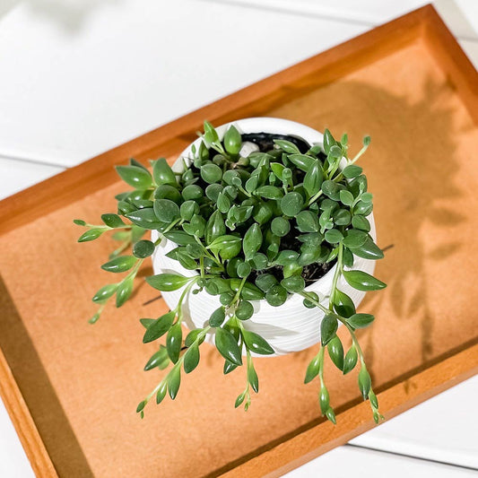 PLANCHU 多肉植物 セネシオ グリーンネックレス 3号丸鉢 受け皿付き 育て方説明書付き Senecio rowleyanus ミドリノスズ 緑の鈴 観葉植物