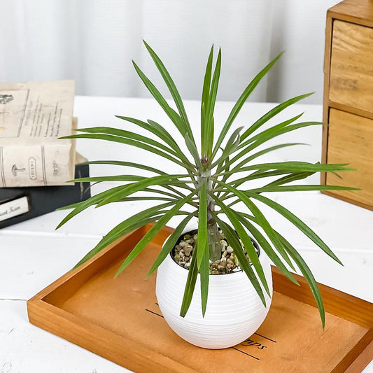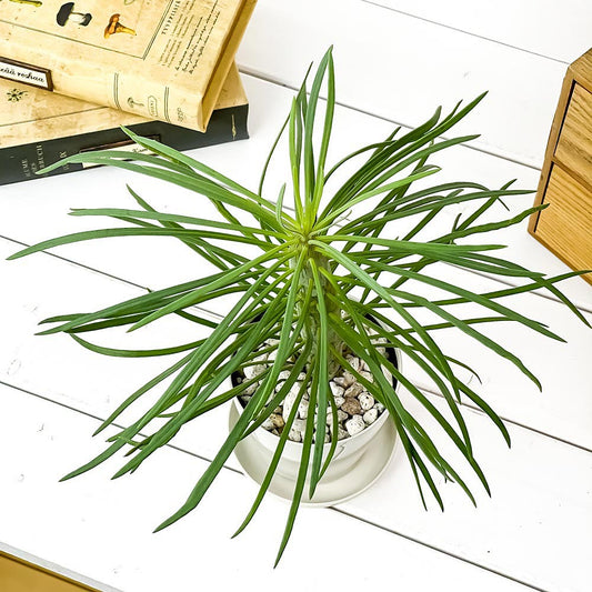 PLANCHU 多肉植物 ユーフォルビア プセウドグロボーサ 3.5号樹脂鉢 ミディダークグレー サスティー付き 受け皿付き 育て方説明書付き Euphorbia pseudoglobosa 稚児麒麟