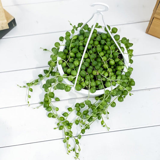 PLANCHU 多肉植物 大玉グリーンネックレス 5号鉢 受け皿付き 育て方説明書付き Curio rowleyanus クリオ ミドリノスズ 緑の鈴 観葉植物
