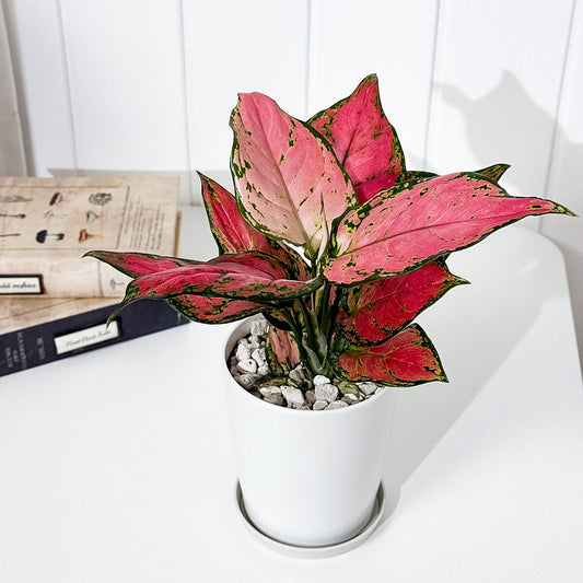 PLANCHU 観葉植物 アグラオネマ レッドバレンタイン 4号鉢 受け皿付き 育て方説明書付き Aglaonema ‘Red Valentine’ 幸せを招くタイの宝石 アロイド