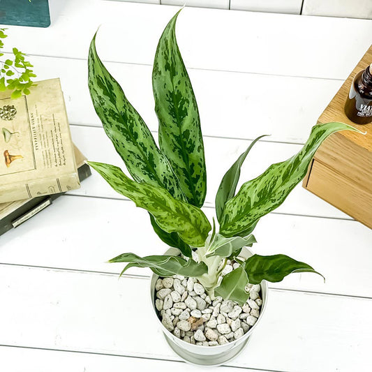 PLANCHU 観葉植物 アグラオネマ ビーナス 4号鉢 受け皿付き 育て方説明書付き Aglaonema ‘Venus’ 幸せを招くタイの宝石 アロイド