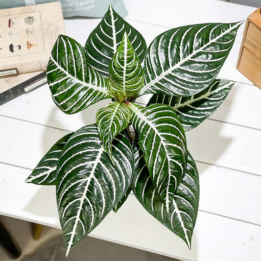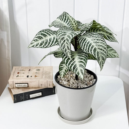 PLANCHU 観葉植物 アフェランドラ シルバークラウド 5号鉢 受け皿付き 育て方説明書付き Aphelandra squarrosa ‘Silver Cloud’