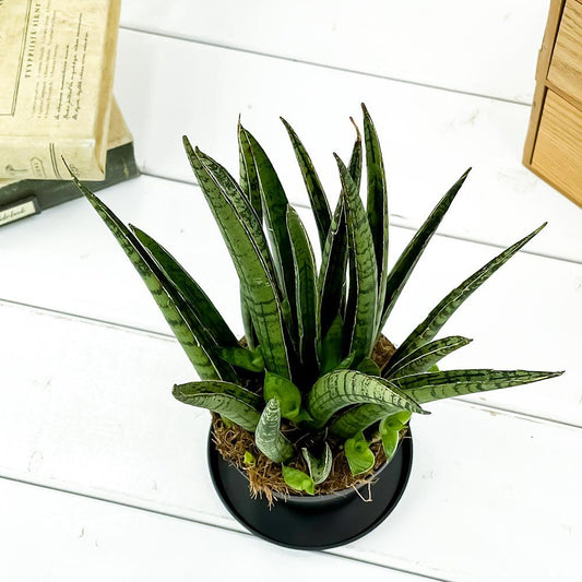 PLANCHU 観葉植物 サンセベリア レディチャーム ミカドタイプ 3号鉢 受け皿付き 育て方説明書付き Sansevieria ‘Lady Charm’ サンスベリア
