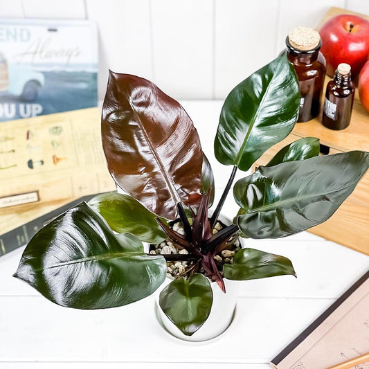 PLANCHU 観葉植物 フィロデンドロン プリンスオブオレンジ 4号鉢 受け皿付き 育て方説明書付き Philodendron ‘Prince Of Orange’ アロイド