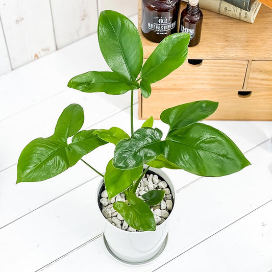 PLANCHU 観葉植物 フィロデンドロン ファンバン 6号鉢 受け皿付き 育て方説明書付き Philodendron goeldii ‘Fun Bun’ アロイド