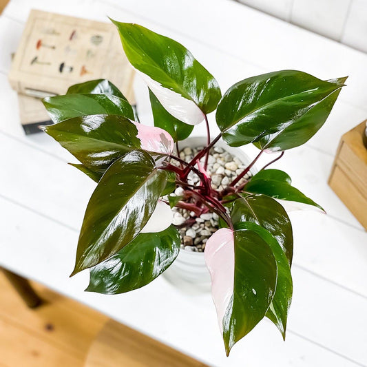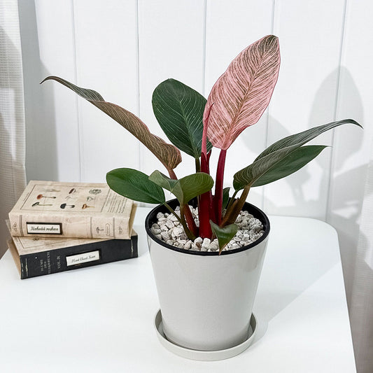 PLANCHU 観葉植物 フィロデンドロン ピンクバーキン 5号鉢 受け皿付き 育て方説明書付き PVP Philodendron ‘Pink Birkin’ アロイド