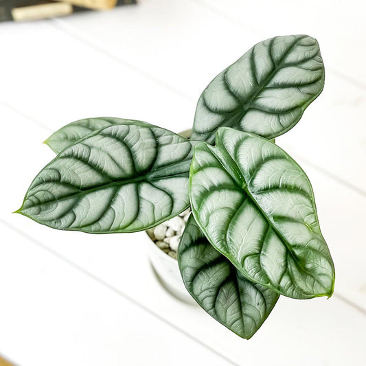 PLANCHU 観葉植物 アロカシア シルバードラゴン 3号丸鉢 受け皿付き 育て方説明書付き Alocasia ‘Silver Dragon’ アロイド