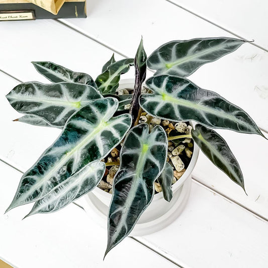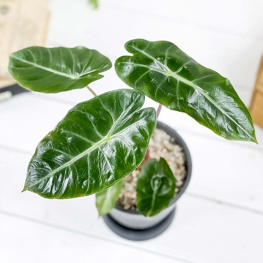 PLANCHU 観葉植物 アロカシア ニンジャ 3.5号スリット鉢 受け皿付き 育て方説明書付き Alocasia reginula ‘Ninja’ アロイド