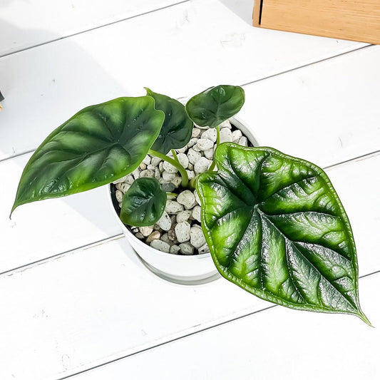 PLANCHU 観葉植物 アロカシア ドラゴンスケール 4号鉢 受け皿付き 育て方説明書付き Alocasia baginda ‘Dragon Scale’ アロイド
