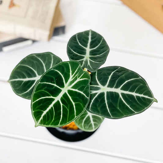 PLANCHU 観葉植物 アロカシア ニンジャ 3号丸鉢 受け皿付き 育て方説明書付き Alocasia reginula ‘Ninja’ アロイド