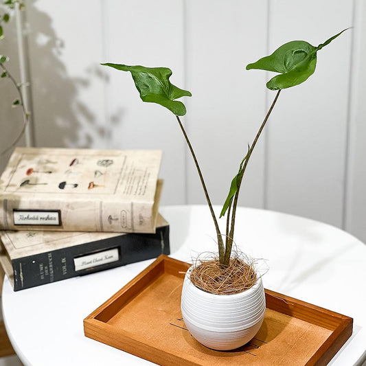 PLANCHU 観葉植物 アロカシア バンビーノ アロー 4号樹脂鉢 ホワイト サスティー付き 受け皿付き 育て方説明書付き Alocasia ‘Bambino Arrow’ アロイド