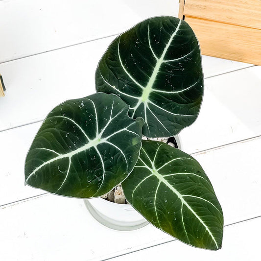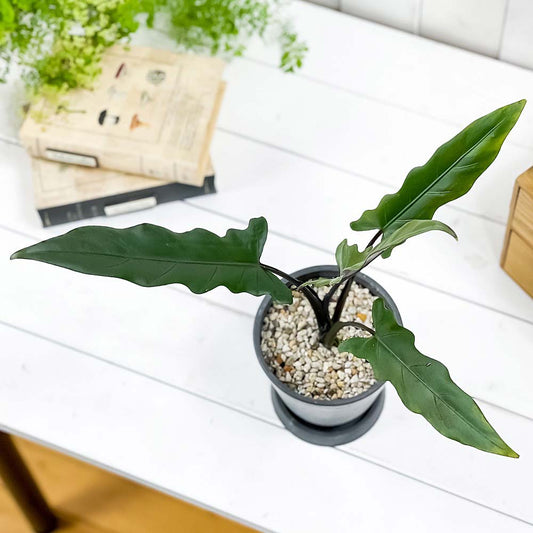 PLANCHU 観葉植物 アロカシア ブラックステム 4号鉢 受け皿付き 育て方説明書付き Alocasia ‘Black Stem’ アロイド