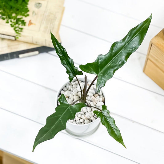 PLANCHU 観葉植物 アロカシア ロンギロバ 5号鉢 受け皿付き 育て方説明書付き Alocasia longiloba ロンギローバ ローウィ ナガバクワズイモ アロイド