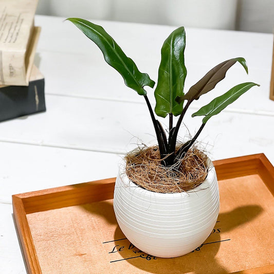 PLANCHU 観葉植物 アロカシア ラウテルバキアナ 4号樹脂鉢 ダークグレー サスティー付き 受け皿付き 育て方説明書付き Alocasia lauterbachiana アロイド