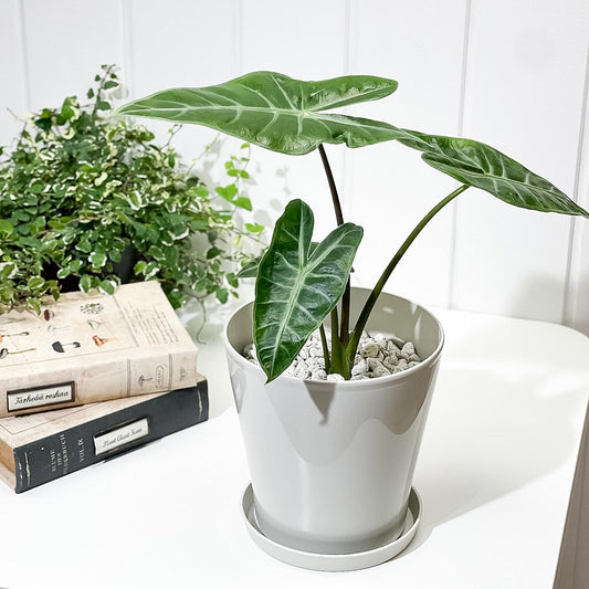 PLANCHU 観葉植物 アロカシア ローライダー 8号スリット鉢 受け皿付き 育て方説明書付き PVP Alocasia cv. アロイド