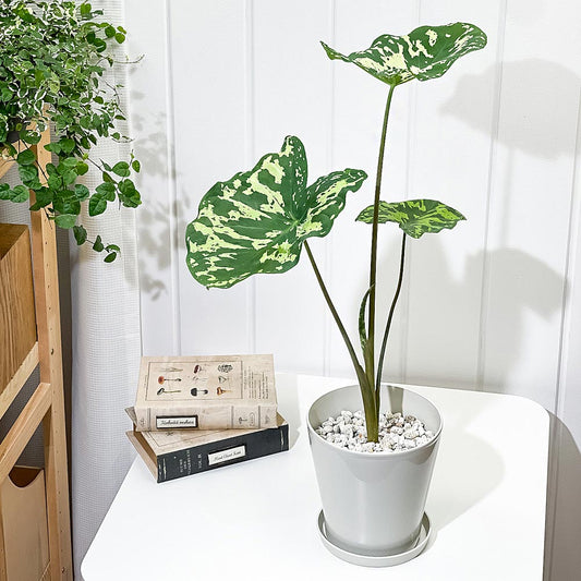 PLANCHU 観葉植物 カラジウム ヒロビューティー 5号鉢 受け皿付き 育て方説明書付き Colocasia ‘Hilo Beauty’ カラディウム カラジューム アロカシア コロカシア アロイド レア品種