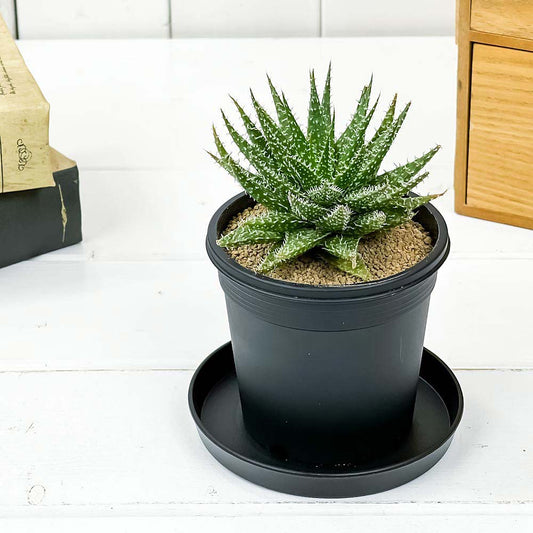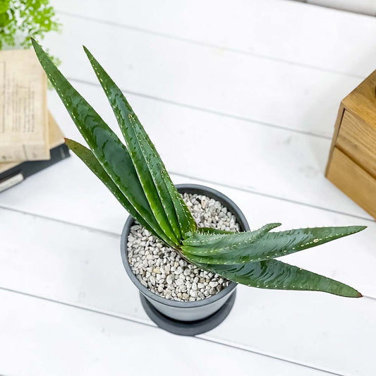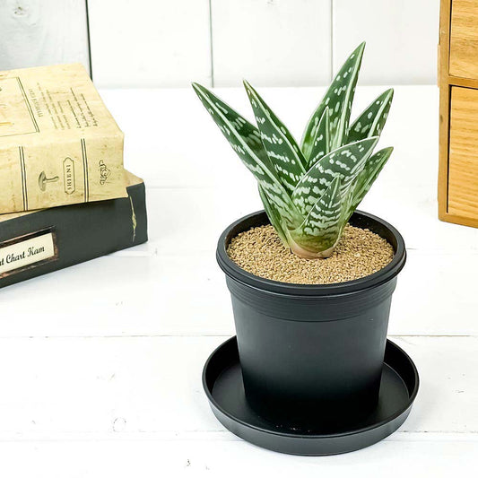 PLANCHU 多肉植物 アロエ スプラフォリアータ 4号樹脂鉢 ダークグレー サスティー付き 受け皿付き 育て方説明書付き Aloe suprafoliata