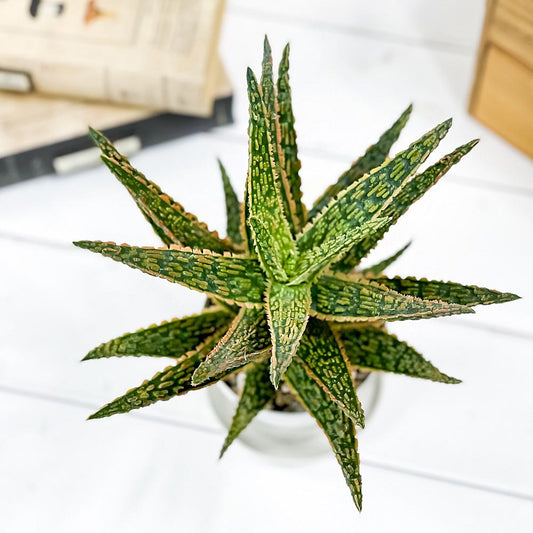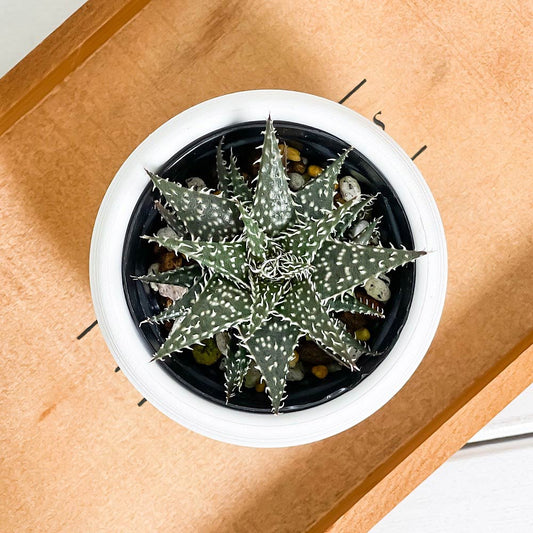 PLANCHU 多肉植物 アロエ ハオルチオイデス × ディスコイングシー 3号鉢 受け皿付き 育て方説明書付き Aloe haworthioides × descoingsii