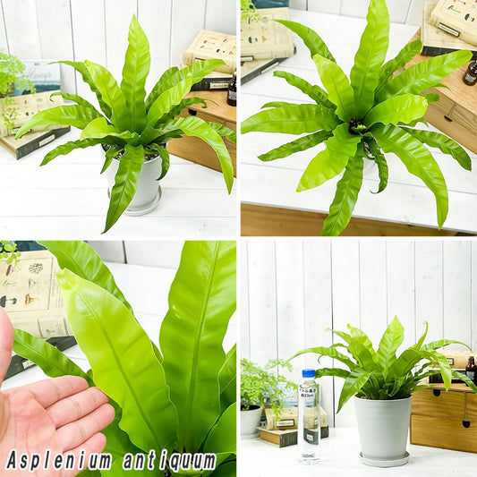 PLANCHU 観葉植物 アスプレニウム アンティクム 4号鉢 受け皿付き 育て方説明書付き Asplenium antiquum アンティカム オオタニワタリ シダ植物