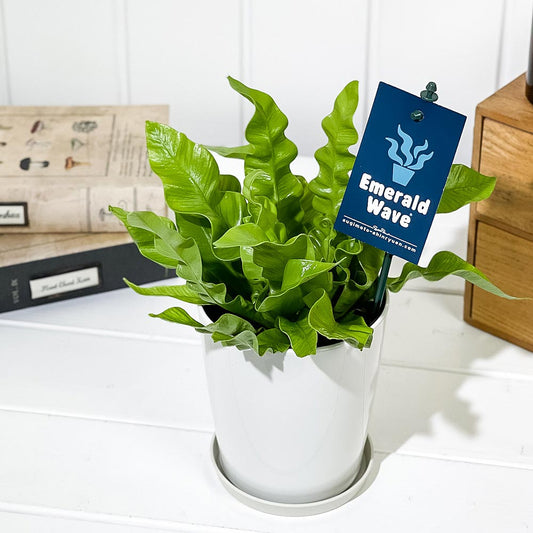 PLANCHU 観葉植物 アスプレニウム エメラルドウェーブ 4号鉢 受け皿付き 育て方説明書付き PVP Asplenium nidus ‘Emerald’ シダ植物