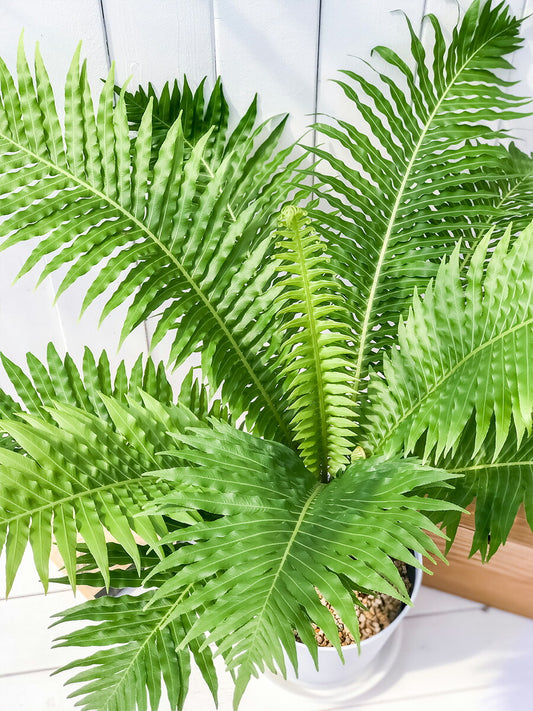 PLANCHU 観葉植物 ブレクナム シルバーレディ 5号樹脂鉢 ホワイト サスティー付き 受け皿付き 育て方説明書付き Blechnum gibbum ‘Silver Lady’ シダ植物