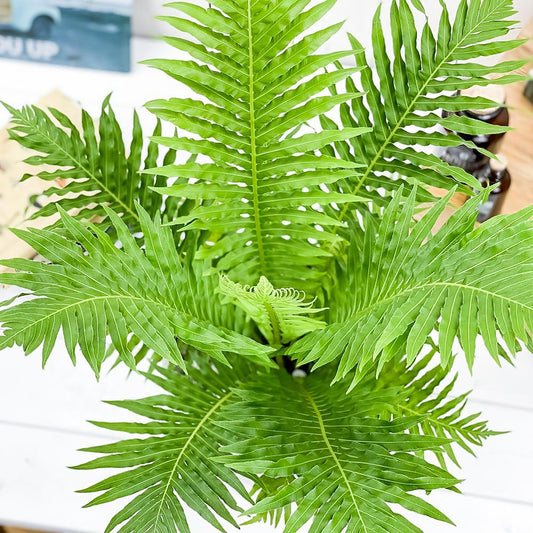 PLANCHU 観葉植物 ブレクナム シルバーレディ 4号鉢 受け皿付き 育て方説明書付き Blechnum gibbum ‘Silver Lady’ シダ植物