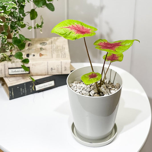 PLANCHU 観葉植物 カラジウム レモンブラッシュ 4号鉢 受け皿付き 育て方説明書付き Caladium ‘Lemon Blush’ アロイド レア品種