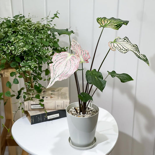 PLANCHU 観葉植物 カラジウム ピンクシンフォニー 4号鉢 受け皿付き 育て方説明書付き Caladium ‘Pink Symphony’ アロイド レア品種
