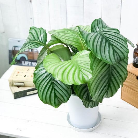 PLANCHU 観葉植物 カラテア オルビフォリア 6号鉢 受け皿付き 育て方説明書付き Calathea orbifolia