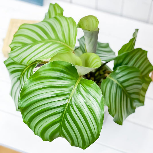 PLANCHU 観葉植物 カラテア オルビフォリア 4号鉢 受け皿付き 育て方説明書付き Calathea orbifolia