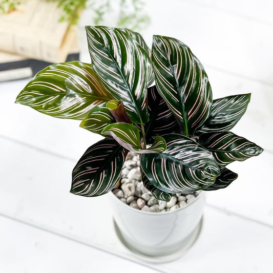 PLANCHU 観葉植物 カラテア サンデリアーナ 4号鉢 受け皿付き 育て方説明書付き Calathea ornata ‘Sabderiana’