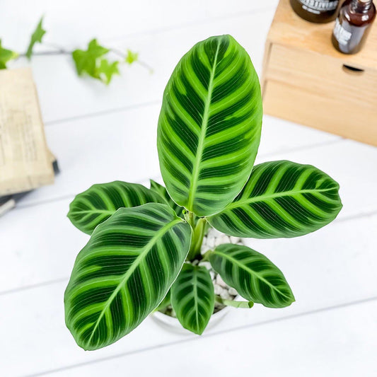 PLANCHU 観葉植物 カラテア ゼブリナ フミリオル 4号鉢 受け皿付き 育て方説明書付き Calathea zebrina ‘Humilior’