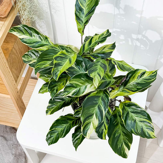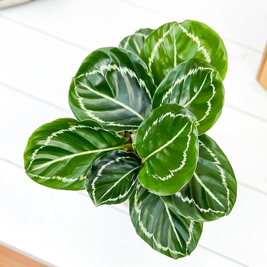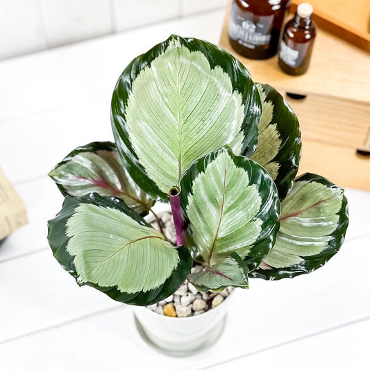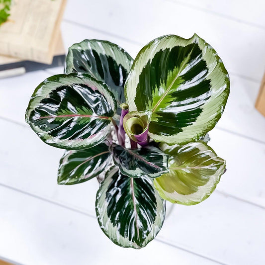 PLANCHU 観葉植物 カラテア シャインスター 4号鉢 受け皿付き 育て方説明書付き Calathea ‘Shine Star’