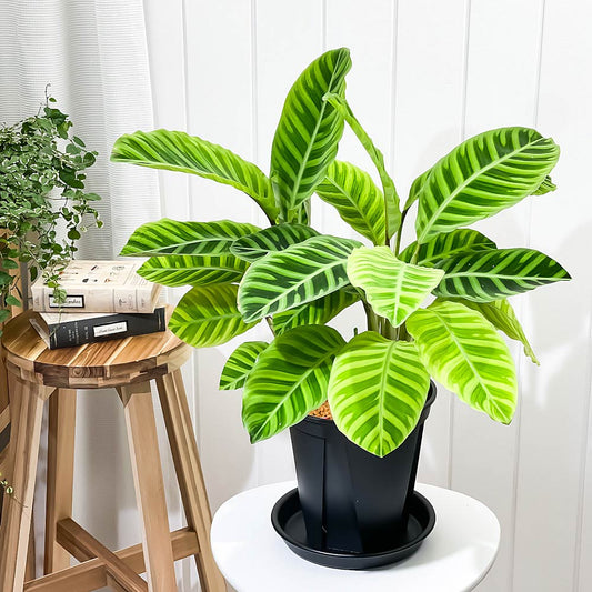 PLANCHU 観葉植物 カラテア ゼブリナ フミリオル 7号スリット鉢 受け皿付き 育て方説明書付き Calathea zebrina ‘Humilior’