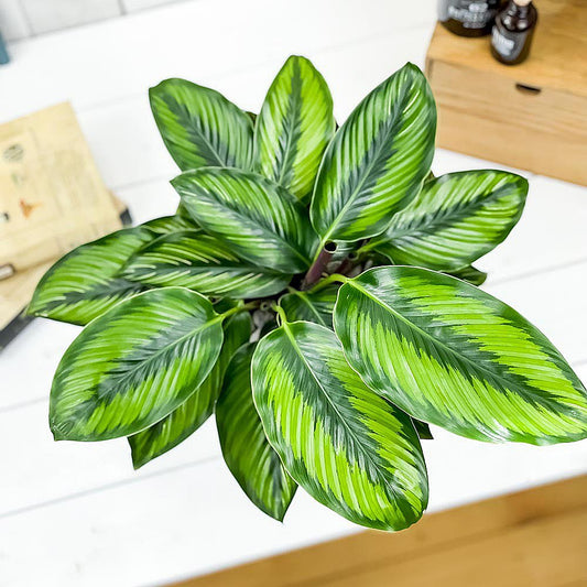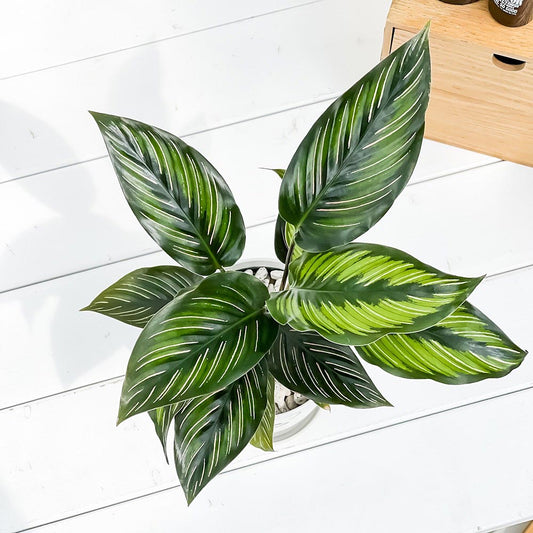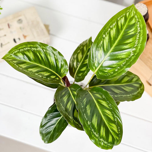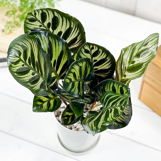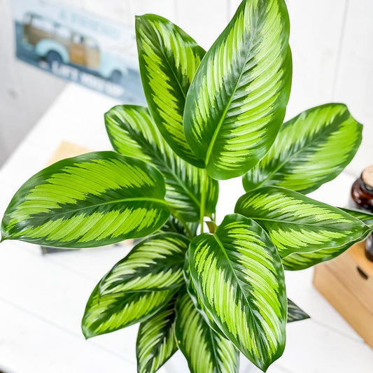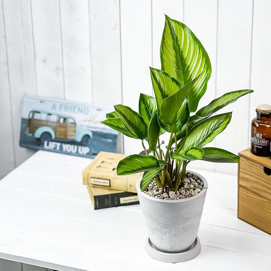 PLANCHU 観葉植物 カラテア ファシアータ 6号鉢 受け皿付き 育て方説明書付き Calathea fasciata