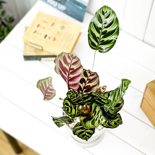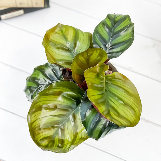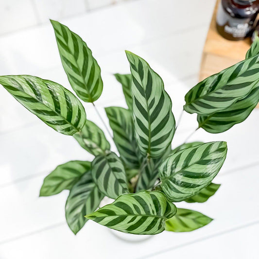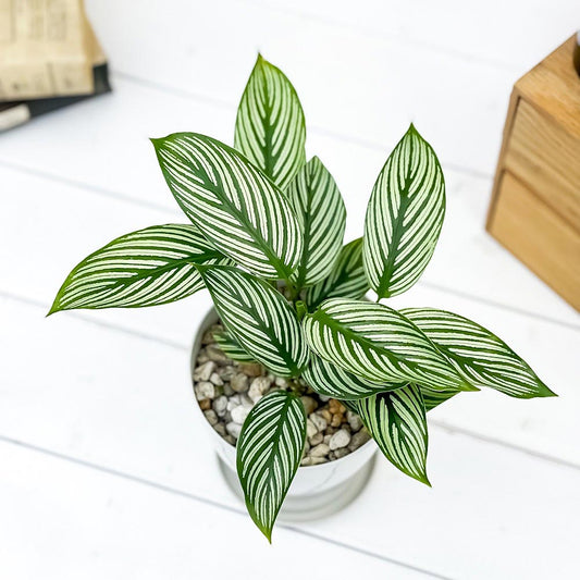 PLANCHU 観葉植物 カラテア ファシアータ 4号鉢 受け皿付き 育て方説明書付き Calathea fasciata
