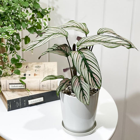 PLANCHU 観葉植物 カラテア ビューティースター 7号樹脂鉢 ホワイト 受け皿付き 育て方説明書付き Calathea 'Beauty Star'
