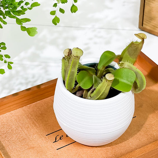 PLANCHU 食虫植物 ネペンテス ビーチバレオ × ビーチバリオ 3号丸鉢 育て方説明書付き N. veitchii bareo × N. veitchii bario ウツボカズラ