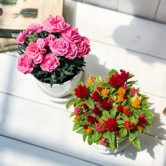 PLANCHU 母の日ギフト 花色おまかせ カーネーション & ケイトウケーキ カシミヤデコレーション 2鉢セット 受け皿付き 育て方説明書付き