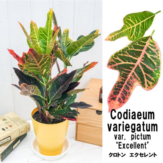 PLANCHU 観葉植物 クロトン エクセレント 5号鉢 受け皿付き 育て方説明書付き Codiaeum variegatum var. pictum ‘Excellent’ ヘンヨウボク 変葉木 鉾葉系