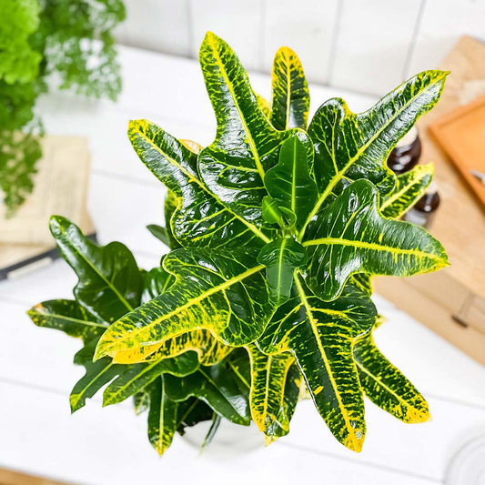 PLANCHU 観葉植物 クロトン ほこ葉系 4号鉢 受け皿付き 育て方説明書付き Codiaeum variegatum cv. ヘンヨウボク 変葉木 鉾葉系