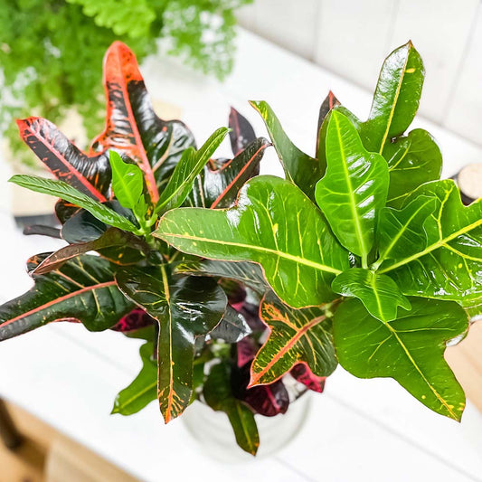 PLANCHU 観葉植物 クロトン 広葉系 4号鉢 受け皿付き 育て方説明書付き Codiaeum variegatum cv. ヘンヨウボク 変葉木